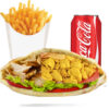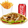 Salade, tomates, oignons, Viande kebab+ frites + 1 boisson 33cl
