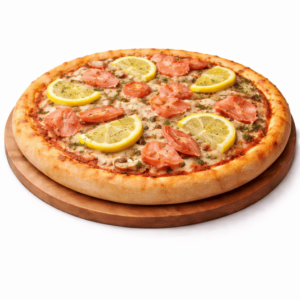 Sauce tomate, fromage, saumon, citron