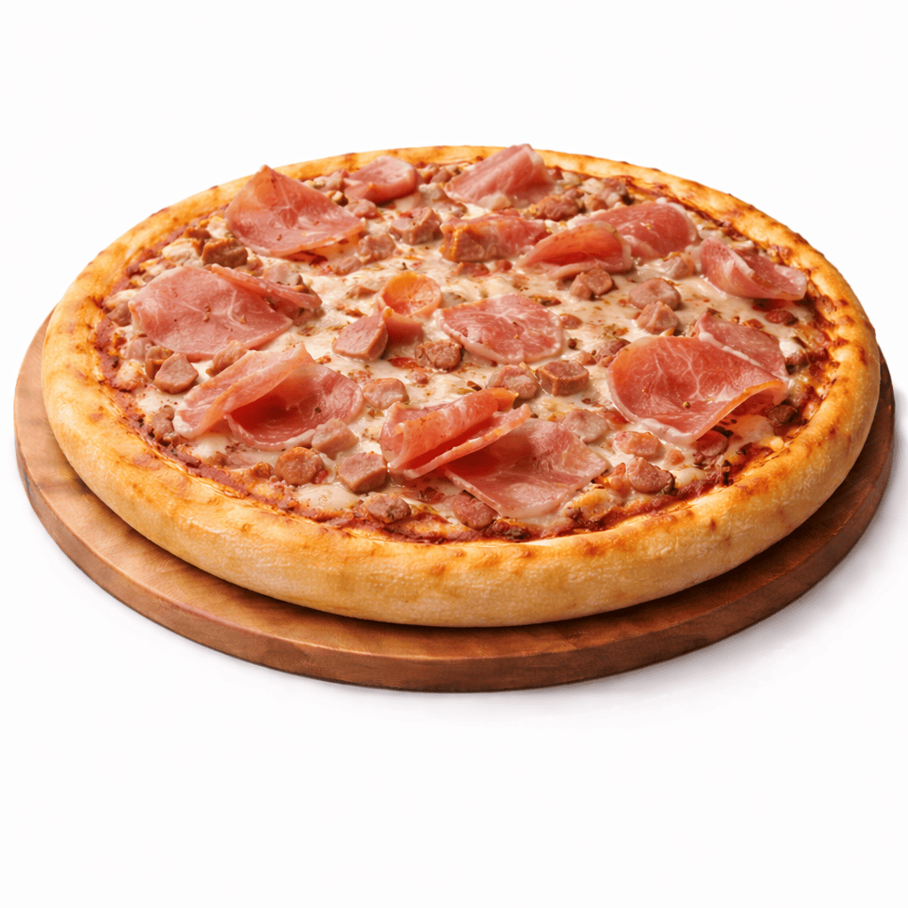 Sauce tomate, fromage, merguez, viande hachée, chorizo, piments