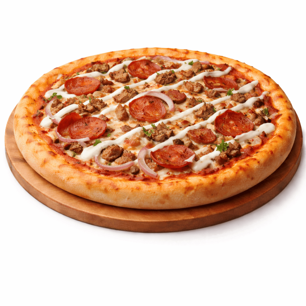 Sauce tomate, fromage, thon, olives, poivrons, oignon