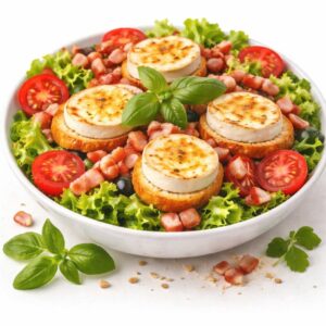 Salade,Tomates,Toast de chèvre chaud, Lardons
