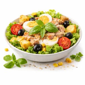Salade, Tomates,Thon,Pommes de terre,Maïs,Olives