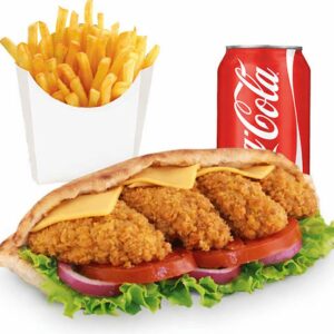 Salade, tomates, oignons, Poulet, cheddar + frites + 1 boisson 33cl